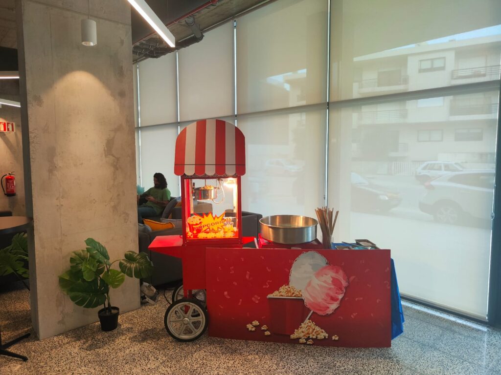 O nosso Carrinho de Pipocas e Algodão Doce leva o cheiro da infância e o sabor da festa a qualquer evento. Preparado no momento, com produtos de qualidade e apresentação cuidada, é perfeito para festas infantis, eventos escolares, feiras, mercados e animações de rua. Um serviço simples, visualmente apelativo e que conquista miúdos e graúdos sem falhar.